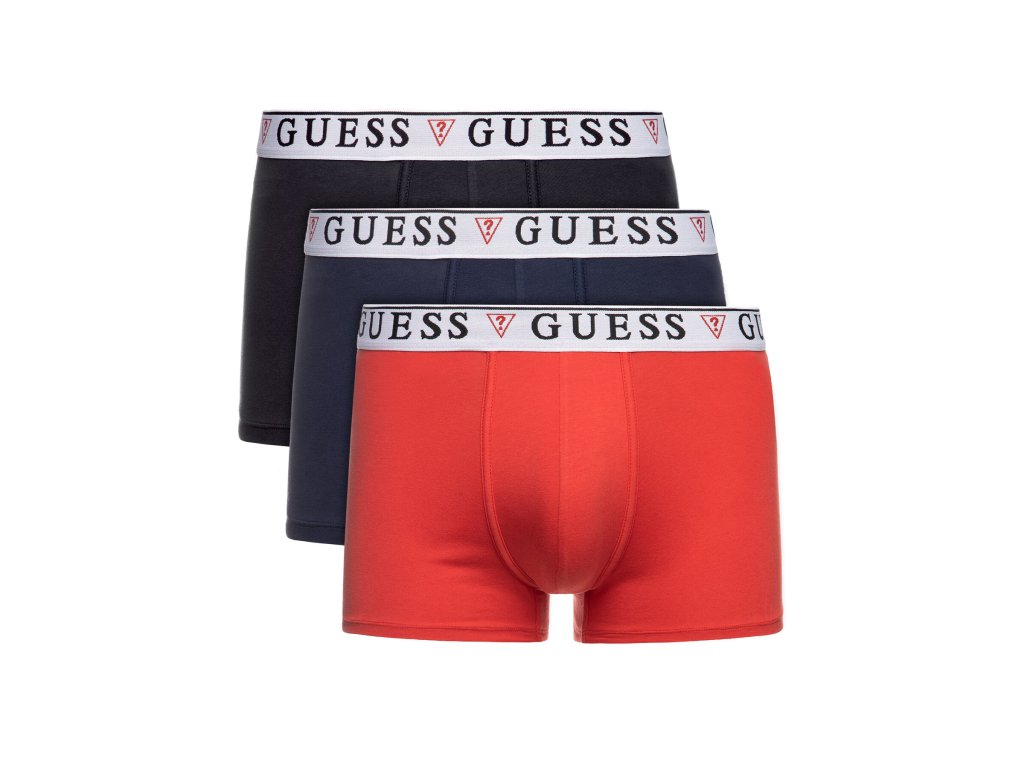 Pánské boxerky Guess 3Pack U97G01-FQ90. Vícebarevný trojpack. Boxerky s širší bílou gumou a logem GUESS po celém obvodu a nižším sedem, jsou vyrobeny z bavlny pro odolnost a absorbci vlhkosti, a elastanu pro komfort a flexibilu nošení.Doplňkové parametry