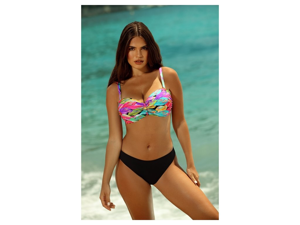 Luxusní plavky ve dvoudílném provedení. Vrchní díl plavek je vyztužená podprsenka rovného střihu tzv.balkonetka. Ramínka jsou nastavitelná a odepínací. Zapínání podprsenky je na zádech. Střed mezi košíčky je vyšší s ozdobnými kamínky. Kalhotky jsou klasického střihu, středně vysoké, dvouvrstvé. Košíčky C a D.