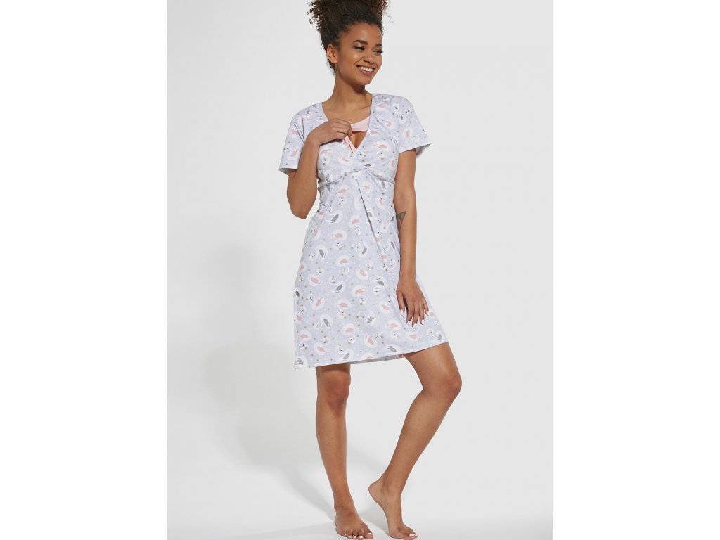 Košile je vyrobena z kvalitní vzorované bavlny. Rukávy jsou krátké, délka košile sahá do poloviny stehen, nad kolena. Košile je pro kojící ženy, kdy zajišťuje pohodlné a komfortní kojení pro vás i vaše miminko. Vsadka ve výstřihu nechává prsa zakrytá a v teple.