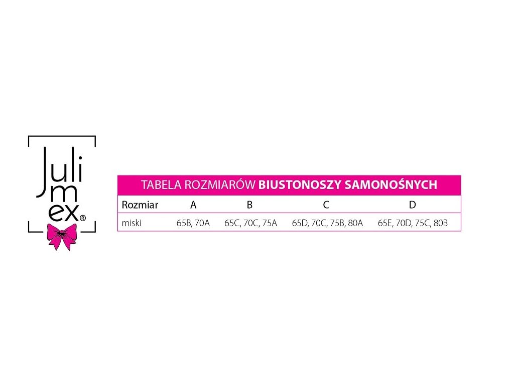 Samodržící nalepovací podprsenka Julimex VIBRA, jejíž konstrukce je zpevněná kosticemi na bocích a v můstku. Samolepící transparentní "křidélka" jsou zárukou pohodlí a komfortu při nošení a dokonale nahrazují plný obvod. Košíčky jsou vyplněné atestovaným silikonovým lepidlem, dokonale přiléhají ke kůži, zvětšují objem poprsí a dodávají mu ideální vzhled. Po opláchnutí lepící vrstvy může být podprsenka používána opakovaně. Podprsenka je vhodná pod oblečení s hlubokým výstřihem a odhalenými zády.