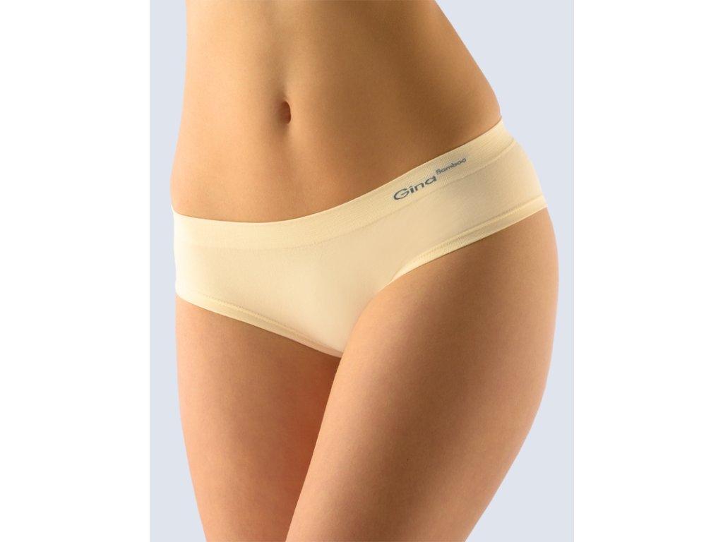 Bokové kalhotky francouzského střihu se širokým bokem. Pas je zesílený a zapravený bezešvým způsobem. Nohavičky jsou začištěné podehnutím. Materiál je vyroben z bambusového vlákna, které je doplněno elastanem. Úplet je velmi jemný, pružný a příjemný na nošení. Do každodenního prádla přináší luxusní hedvábný vzhled.