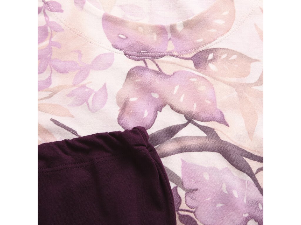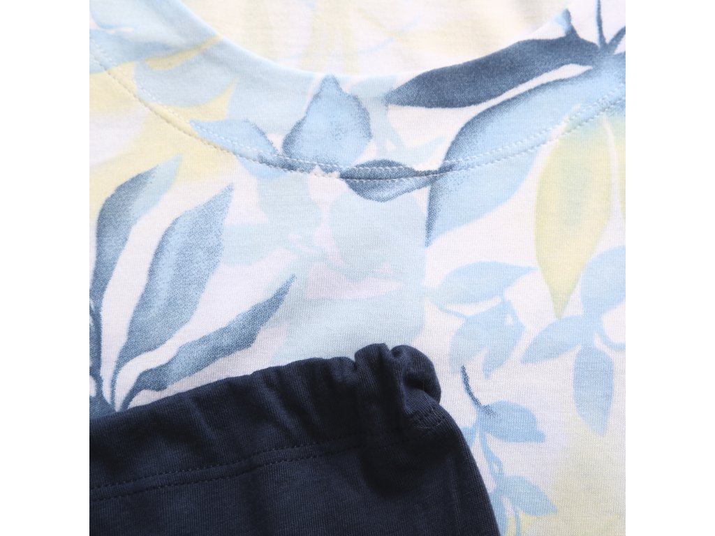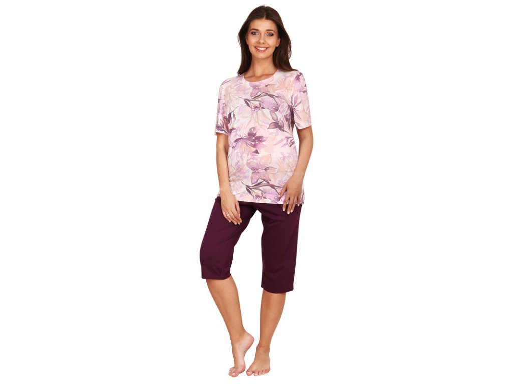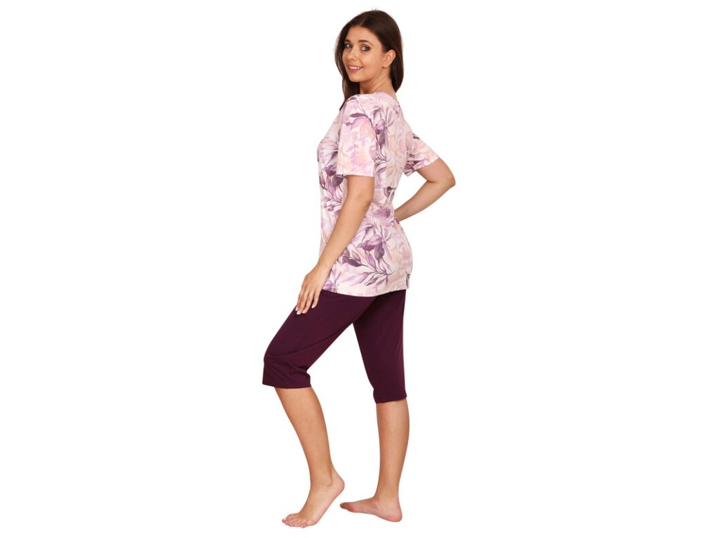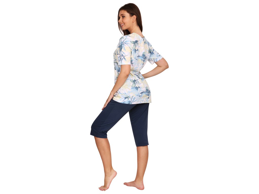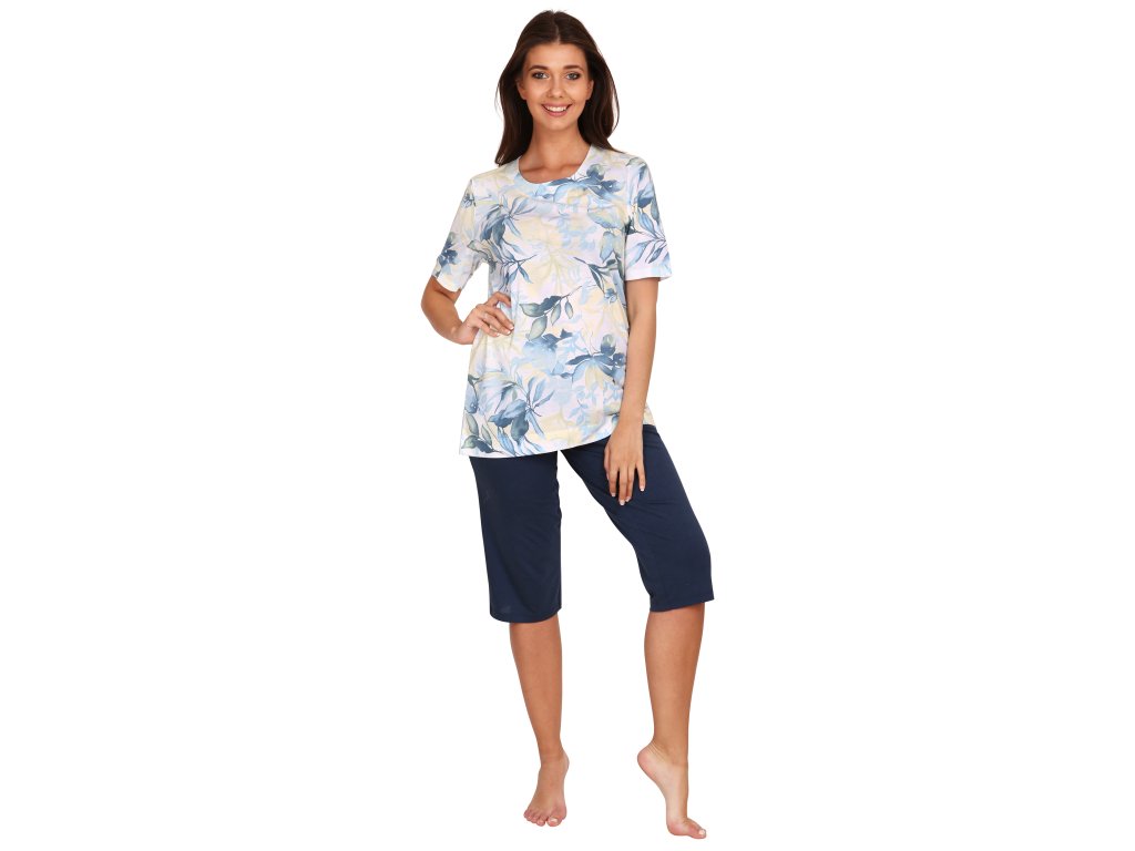 Krásné moderní a kvalitní pyžamo. Vrchní díl s krátkými rukávy a kulatým výstřihem. Spodní díl jsou 3/4 kalhoty se všitou gumou. Materiál je směs bavlny a modalu, je velmi jemnný a příjemný na nošení.