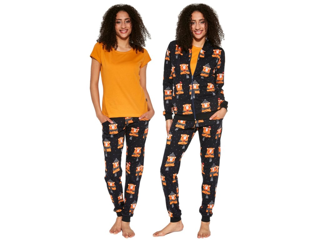 Pyžamový 3pack komplet obsahuje jednobarevné triko s krátkým rukávem, kalhoty s celopotiskem zakončené do nápletu a mikinu na zip s kapucí ve stejném potisku jako jsou kalhoty, zakončeny také do nápletu. Vše je vyrobeno z kvalitního bavlněného úpletu.