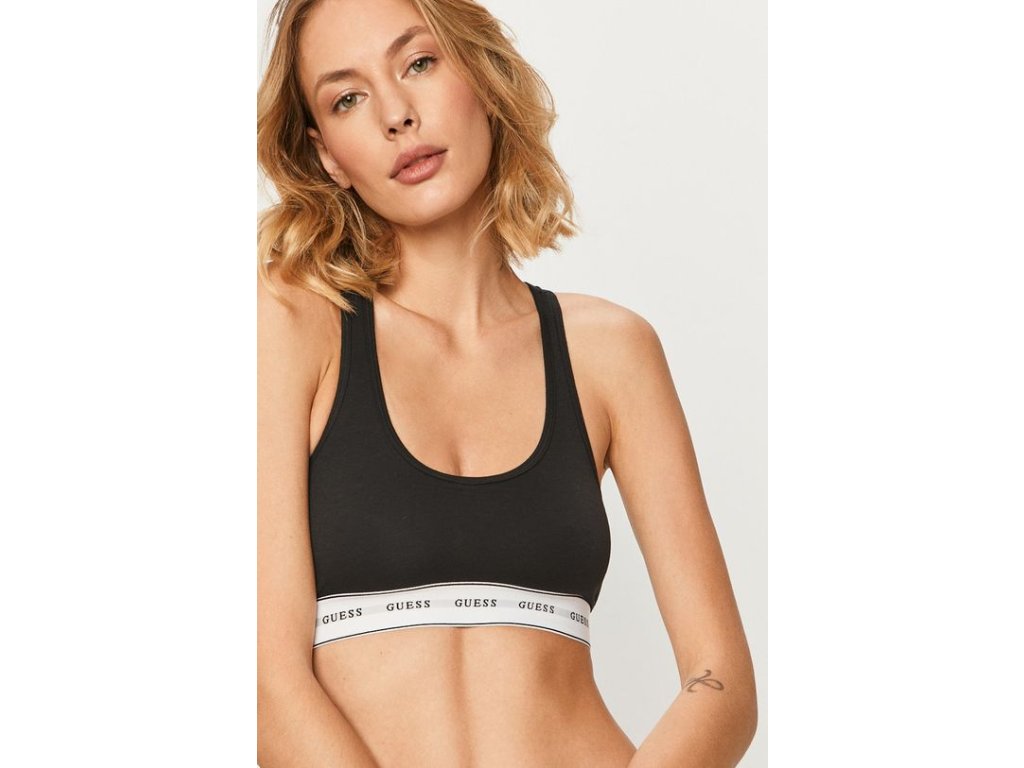 Dámská sportovní podprsenka GUESS typu braletka pro volnočasové aktivity, nebo běžné nošení. Podprsenka je vyrobena z příjemného bavlněného materiálu. Spodní lem je tvořen gumou s logy GUESS.