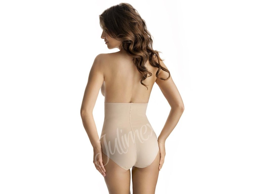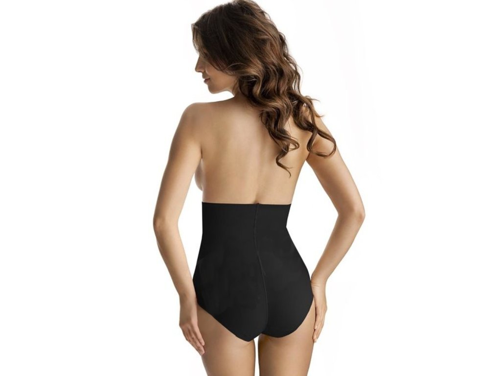 Vysoké stahovací kalhotky pod prsa. V horním lemu na spodní straně jsou silikonové pásky pro jistější držení kalhotek - nerolují se. Kalhotky krásně vytvarují postavu. Jsou vyrobeny z velmi příjemného materiálu, který je tenky a prodyšný a přitom skvěle stahující. Spodní body jsou klasické kalhotky, které mají bezešvou úpravu a bavlněný klínek.